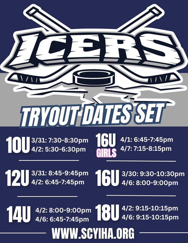 Icers tryout dates! Look for registration soon!