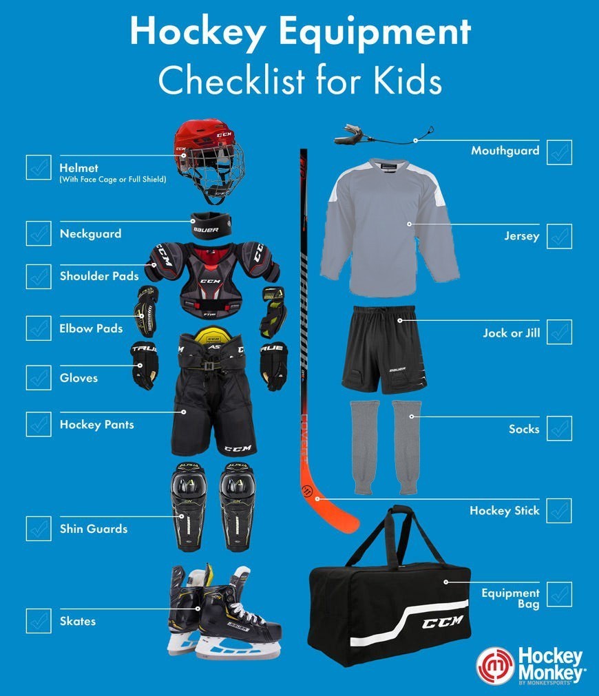 Full protective equipment is required to play ice hockey. SCYIHA players must wear the following equipment:
